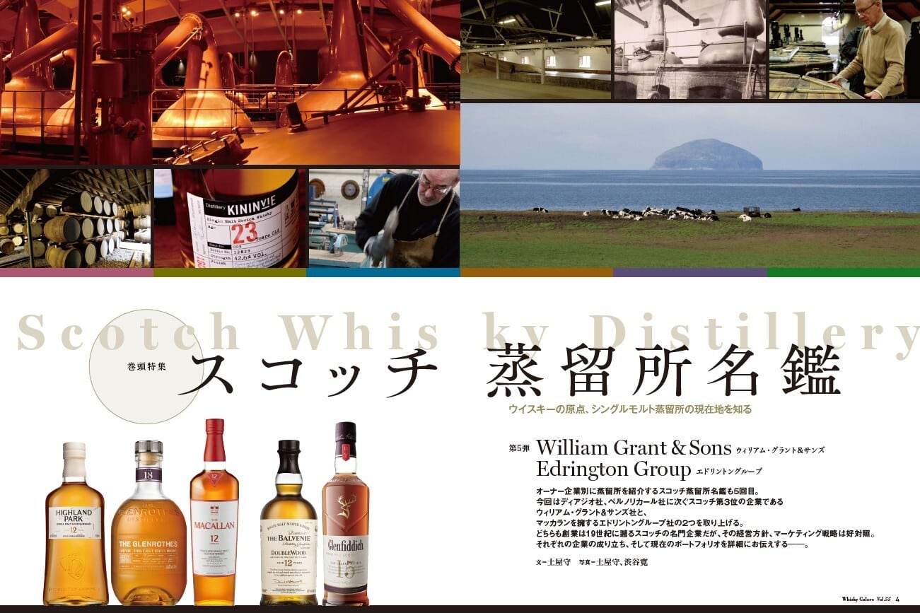 巻頭特集は「スコッチ蒸留所名鑑」第5弾、ウィリアム・グラント&サンズとエドリントングループの8蒸留所を一挙掲載!