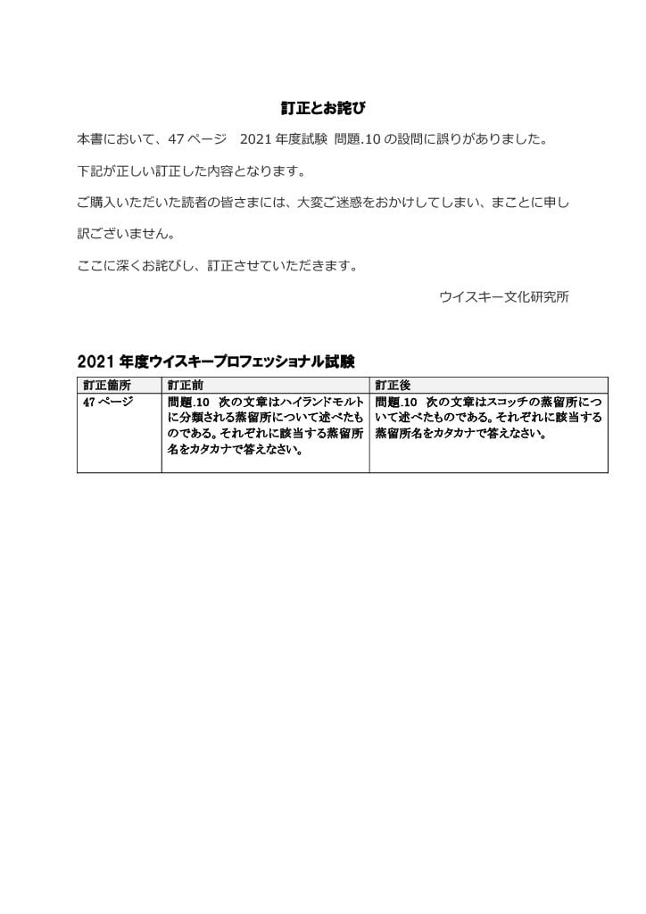 過去3年分(2019〜2021年度)のウイスキープロフェッショナル試験の問題と解答をまとめてこの一冊に収録。